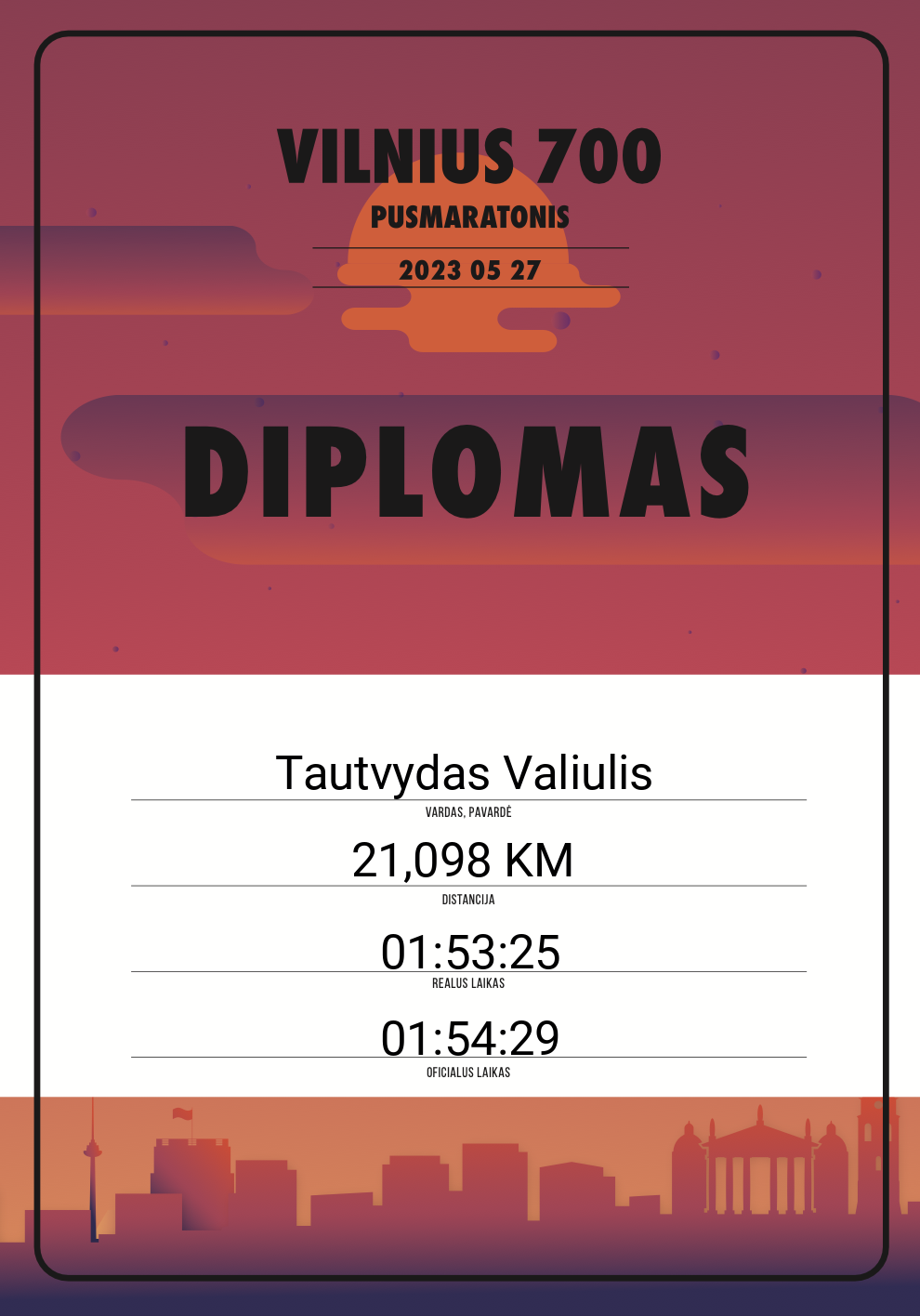 | 454 | Tautvydas Valiulis | 10608 | Lithuania | 21,098 KM | 01:54:29 | Diplomas | |