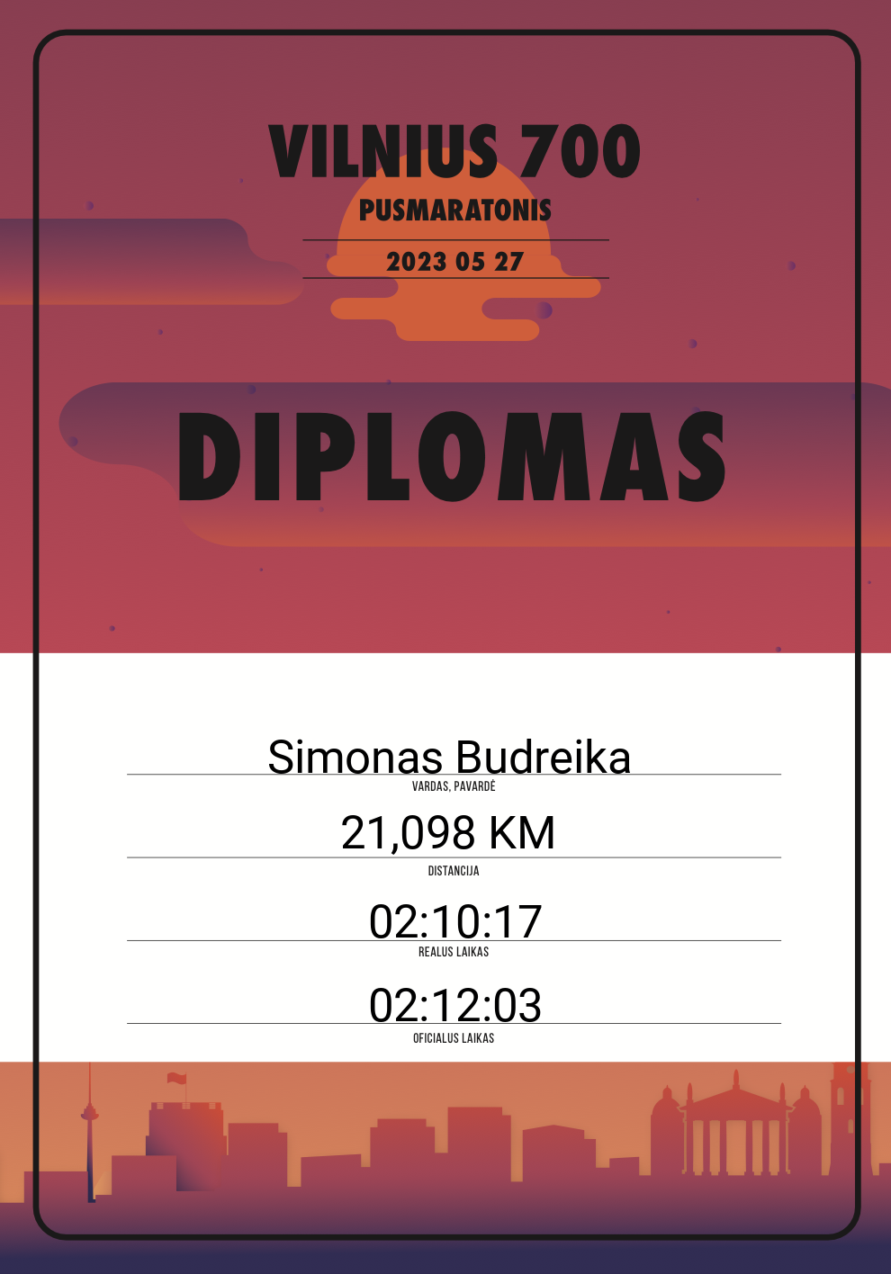 | 805 | Matas Aleknavicius | 10602 | Lithuania | 21,098 KM | 02:21:00 | Diplomas | |