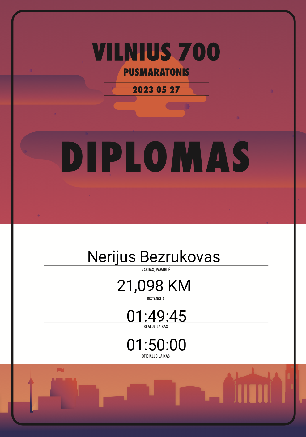 | 74 | Tomas Davidovič | Perkūnkiemio g. 4A, Vilnius | 10884 | Lithuania | 21,098 KM | 01:30:40 | Diplomas |