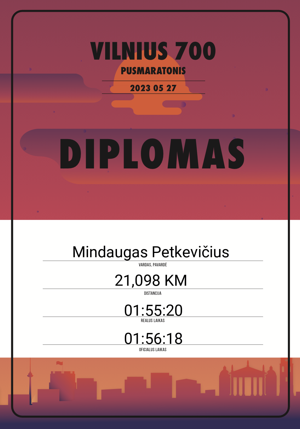 | 37 | Vilius Jorudas | 10953 | Lithuania | 21,098 KM | 01:26:57 | Diplomas | |
