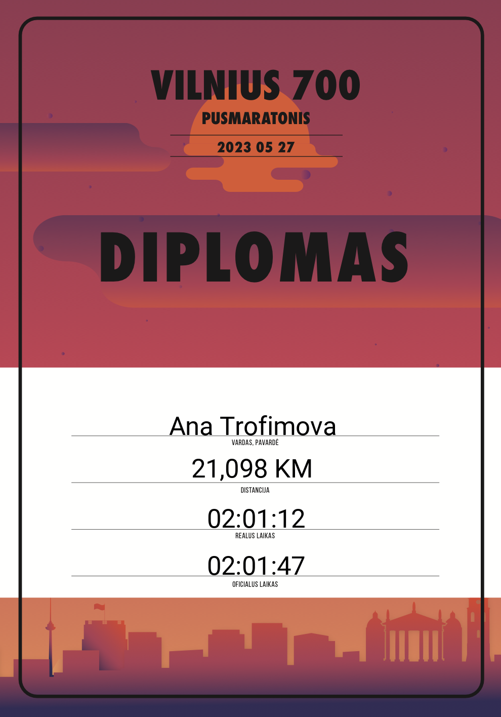 | 767 | Meda Petkauskaite | 10138 | Lithuania | 21,098 KM | 02:15:47 | Diplomas | |