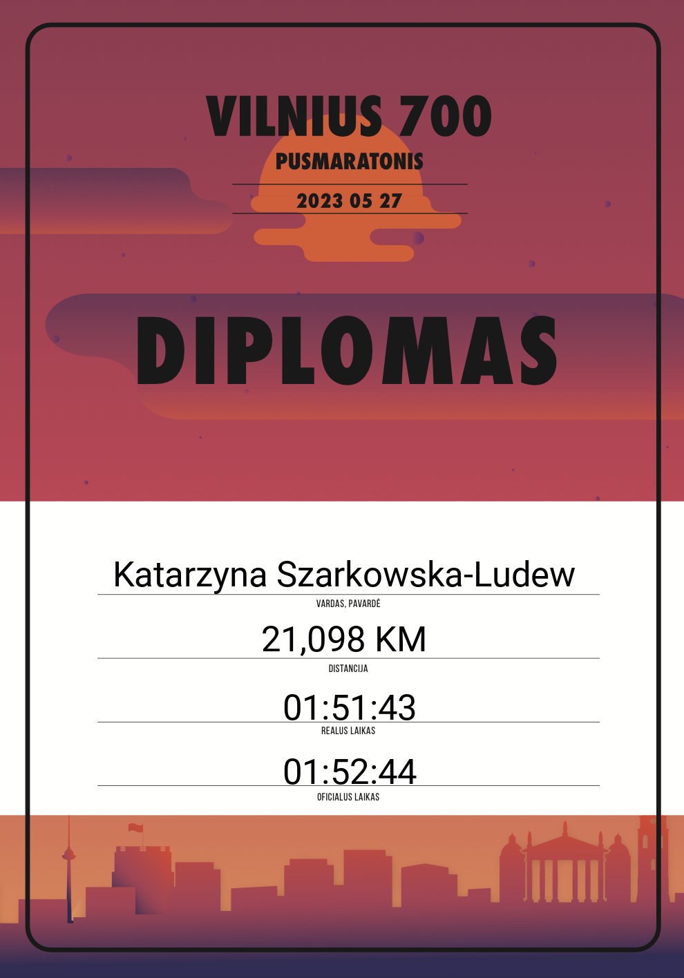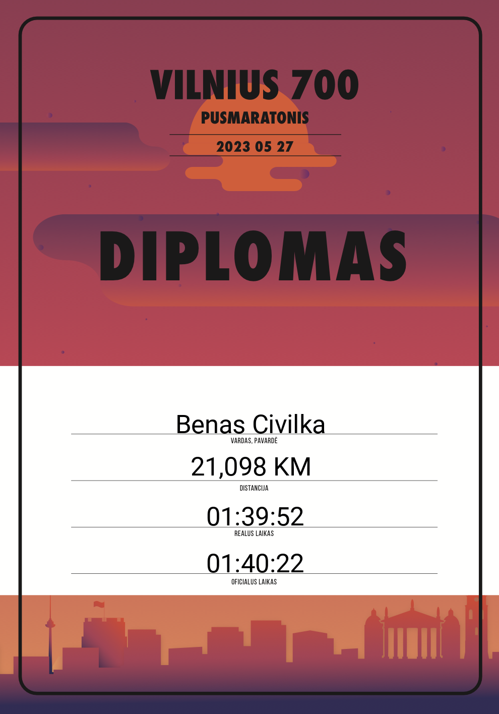 | 170 | Benas Civilka | 10439 | Lithuania | 21,098 KM | 01:40:22 | Diplomas | |