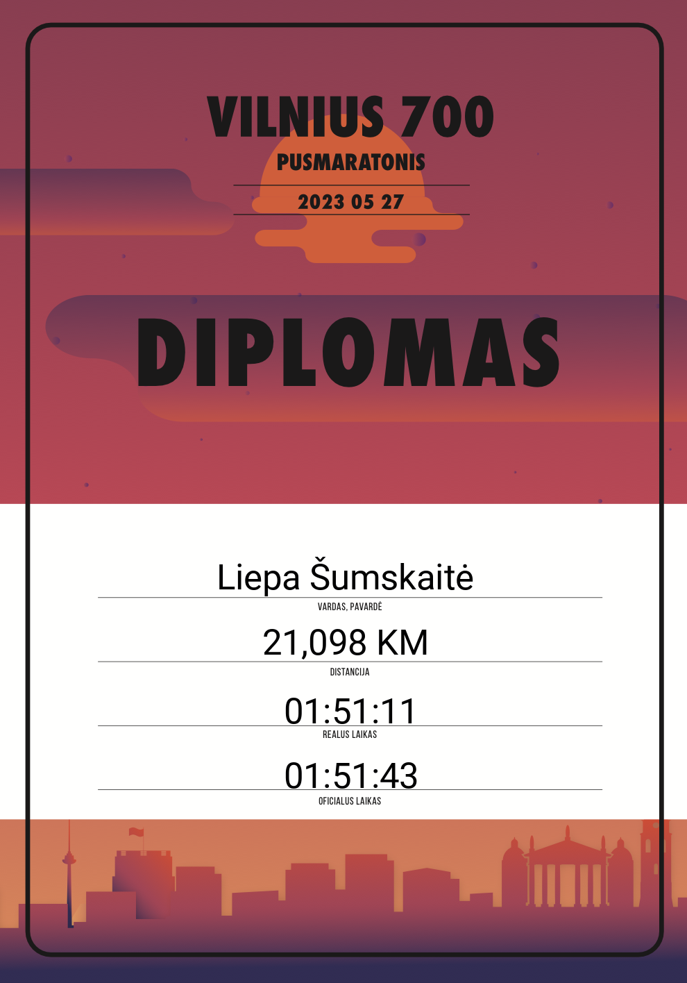 | 553 | Emilija Jaraitė | 10447 | Lithuania | 21,098 KM | 01:59:34 | Diplomas | |
