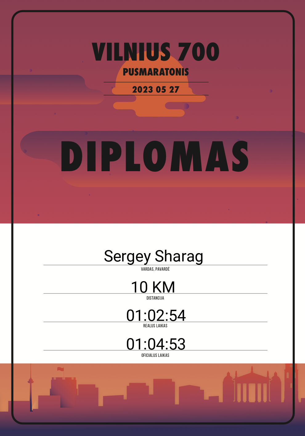 | 673 | Sergey Sharag | 20237 | Lithuania | 10 KM | 01:04:53 | Diplomas | |