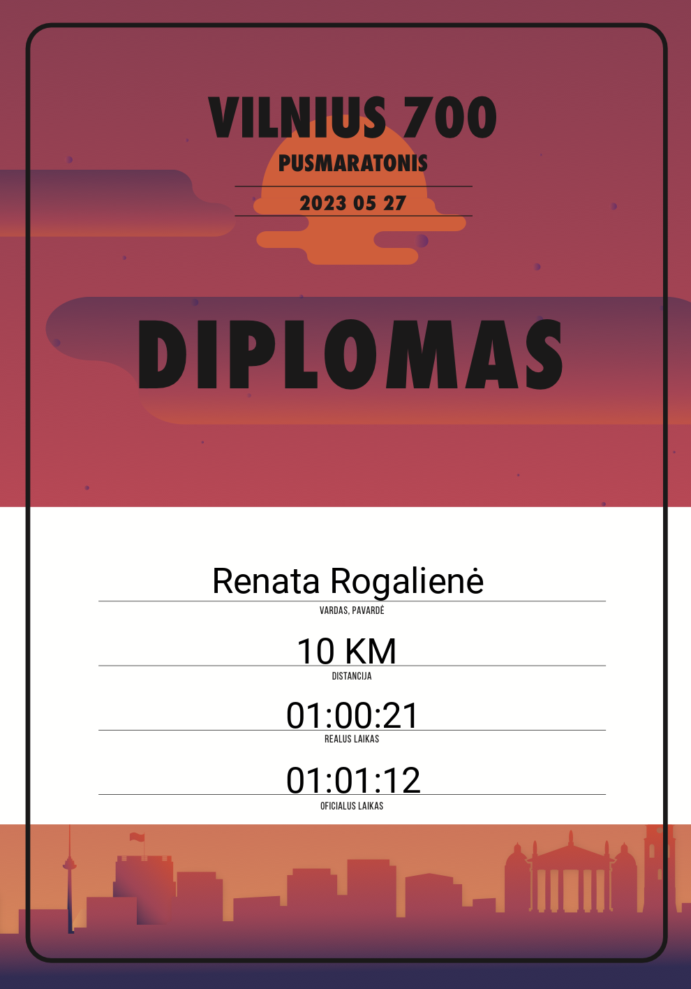 | 568 | Renata Rogalienė | 20966 | Lithuania | 10 KM | 01:01:12 | Diplomas | |