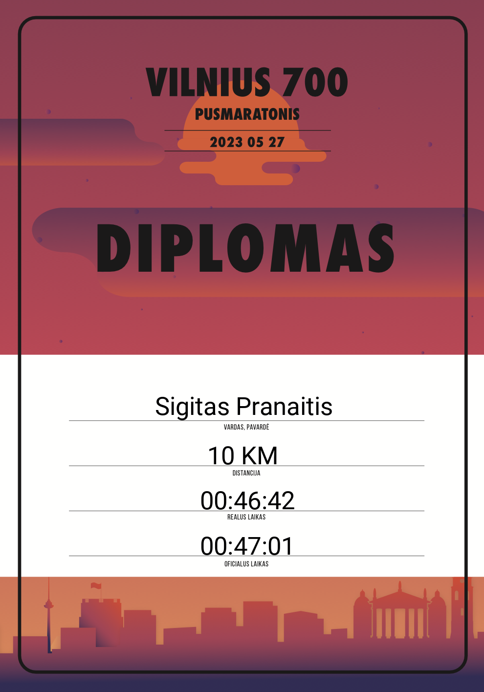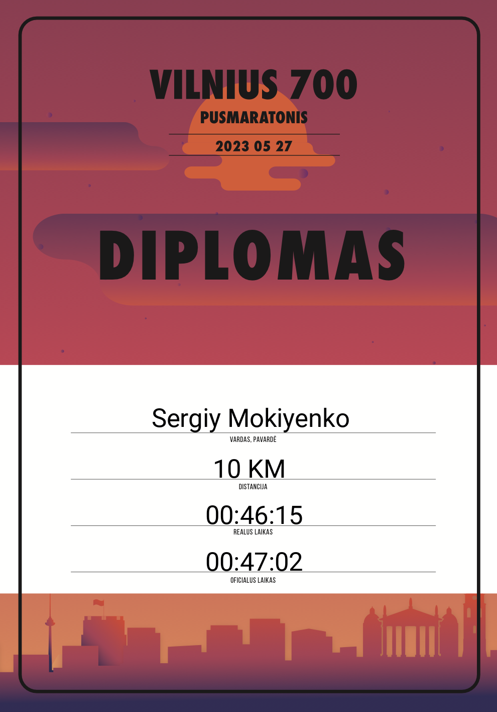 | 100 | Aleksandras Listopadas | 20025 | Lithuania | 10 KM | 00:47:14 | Diplomas | |