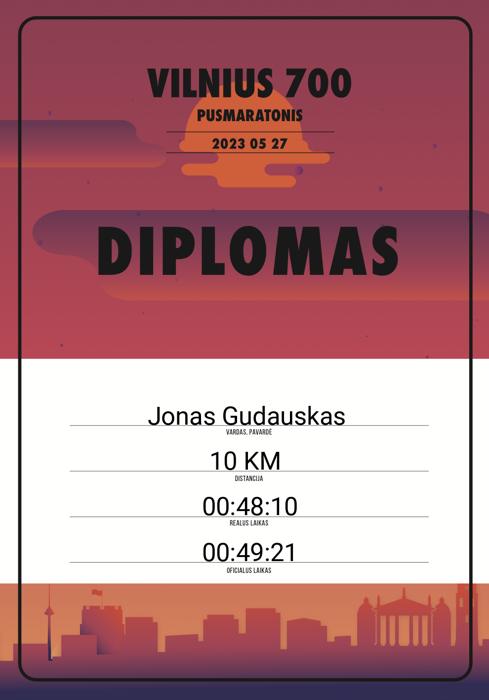 | 138 | Deividas Buinovskis | Love Streams Running | 20264 | Lithuania | 10 KM | 00:49:22 | Diplomas |