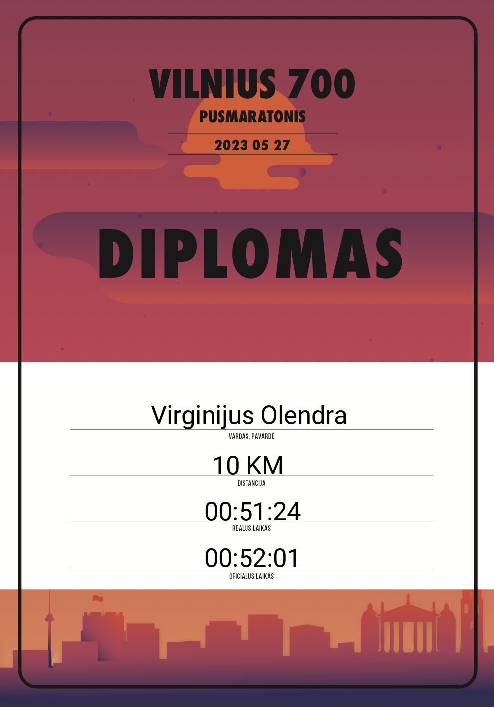 215 Virginijus Olendra Jomantai 20530 Lithuania 10 KM 00:52:01 00:51:24 00:26:26 Diplomas