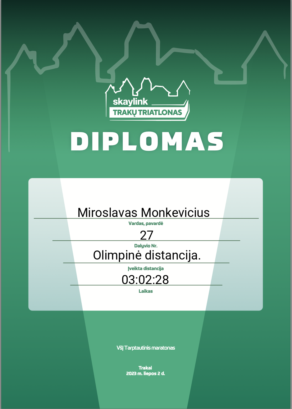 169 Vytautas Jakštys Runglorious Bastards 17 Lithuania Olimpinė distancija. 03:05:15 N/A N/A N/A 00:14:43 00:14:27 00:14:45 00:01:20 00:58:14 00:14:18 Diplomas