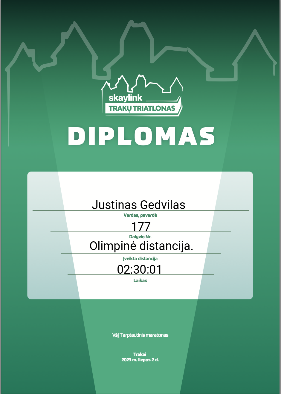 | 57 | Deividas Jančius | Kauno Triatlono Klubas | 215 | Lithuania | Olimpinė distancija. | 02:30:07 | Diplomas |