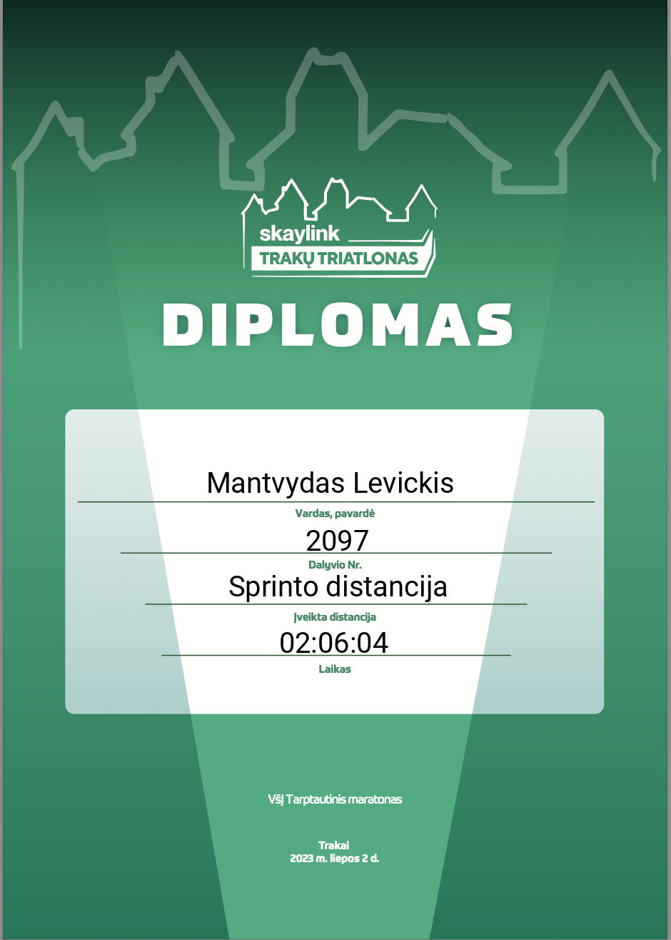 | 139 | Joris Dautartas | Sveikiausia Asociacija | 2028 | Lithuania | Sprinto distancija | 01:53:47 | Diplomas |