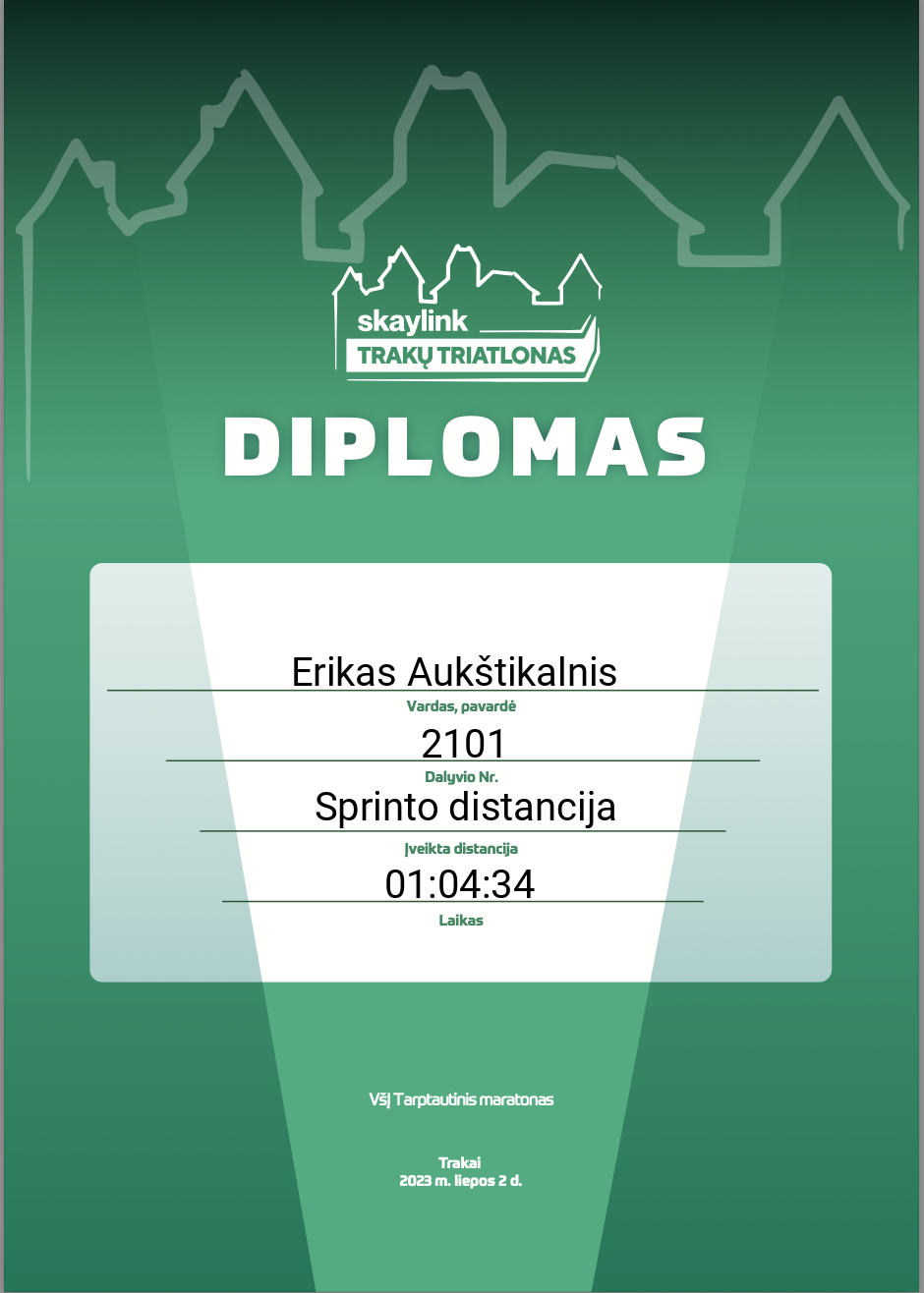 5 Erikas Aukštikalnis Kauno Triatlono Klubas 2101 Lithuania Sprinto distancija 01:04:34 00:10:48 00:00:35 00:32:49 00:10:05 00:09:45 00:00:32 00:19:51 Diplomas