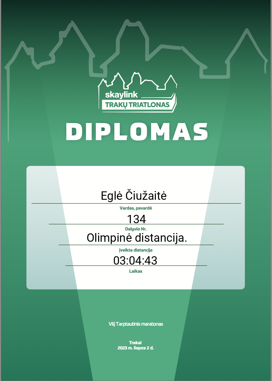 167 Eglė Čiužaitė TRItonas 134 Lithuania Olimpinė distancija. 03:04:43 00:43:14 00:02:50 01:29:16 00:11:42 00:11:51 00:12:12 00:01:47 00:47:36 00:11:51 Diplomas