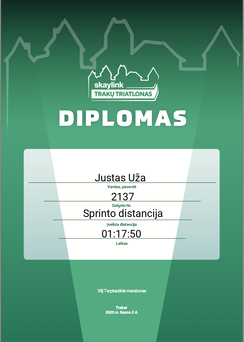 | 45 | Vitalijus Makarskas | Klaipedos triatlono klubas | 3066 | Lithuania | Super sprinto distancija | 00:53:55 | Diplomas |