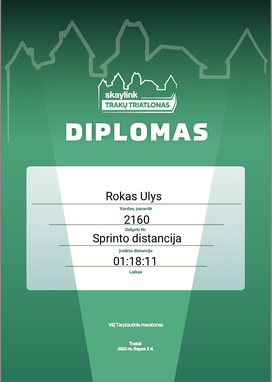 | 46 | Rolandas Rupslaukis | Klaipėdos Triatlono klubas | 94 | Lithuania | Olimpinė distancija. | 02:26:40 | Diplomas |