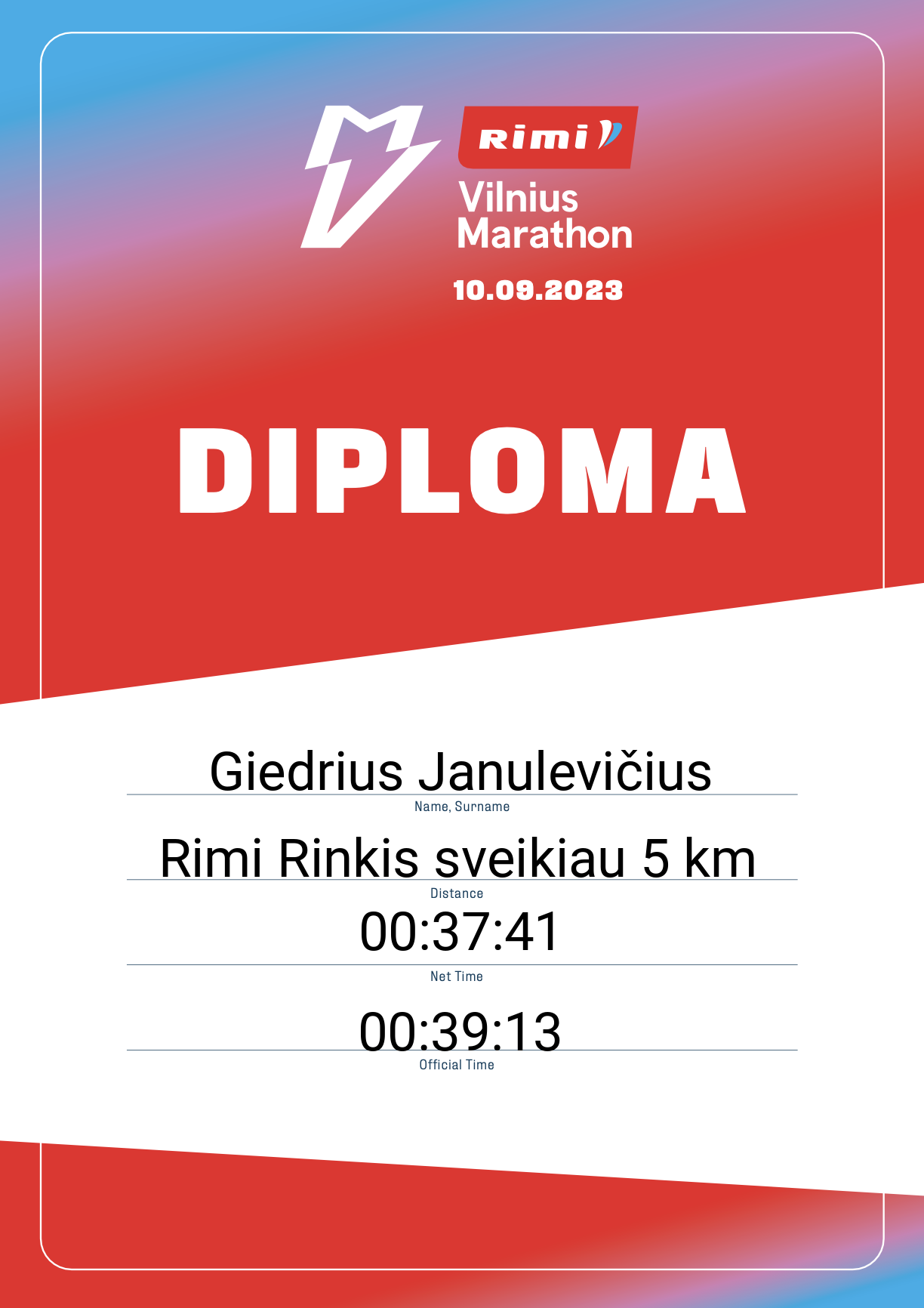 | 2458 | MARCIN KAWCZYŃSKI | 30513 | Poland | Rimi Rinkis sveikiau 5 km | 00:47:42 | Diplomas |