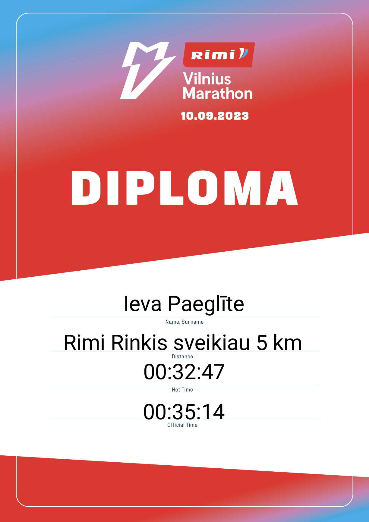 | 1074 | Indre Liubinskaite | 30524 | Lithuania | Rimi Rinkis sveikiau 5 km | 00:32:37 | Diplomas | |