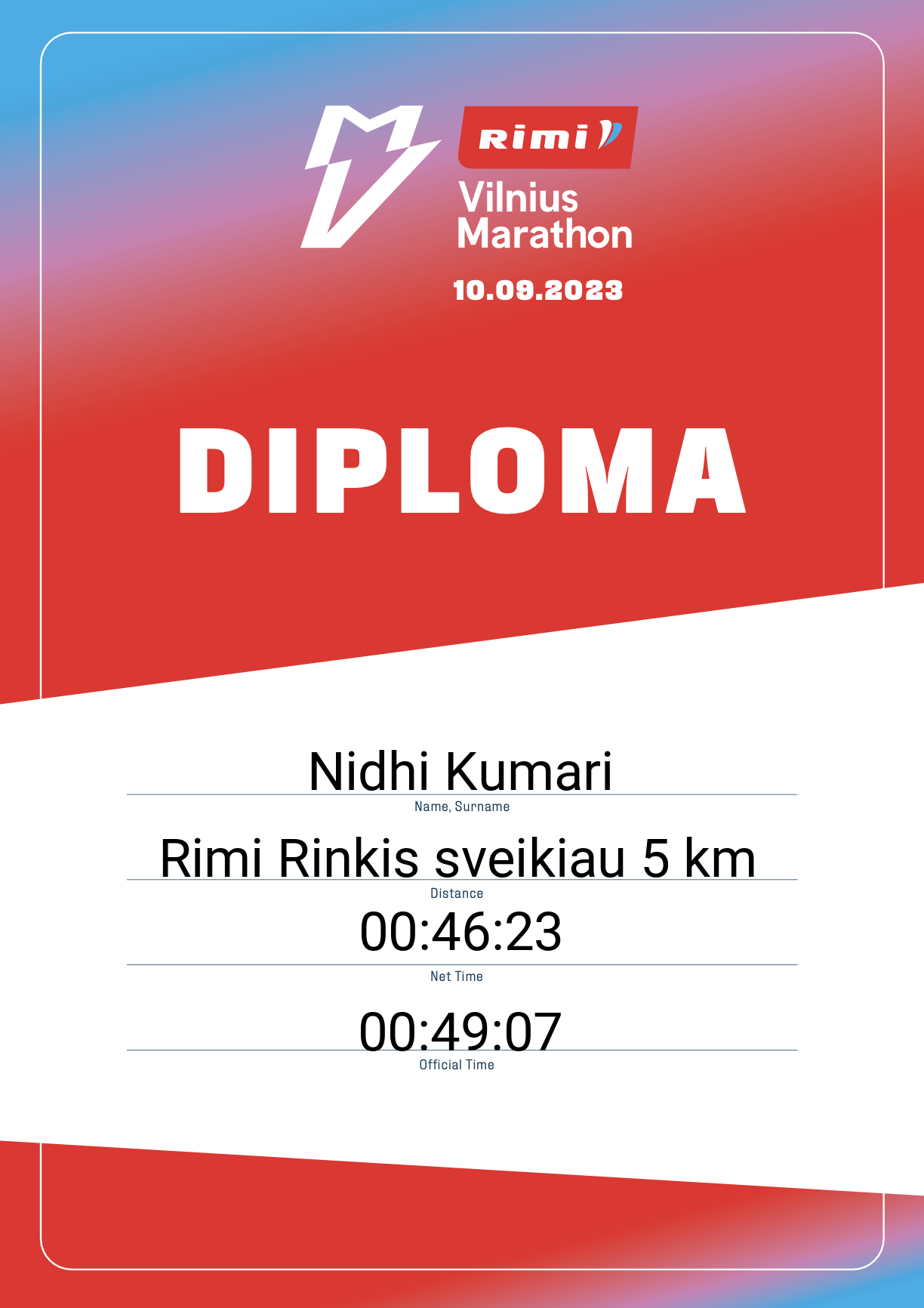 | 2497 | Nidhi Kumari | Accenture | 30694 | Lithuania | Rimi Rinkis sveikiau 5 km | 00:49:07 | Diplomas |