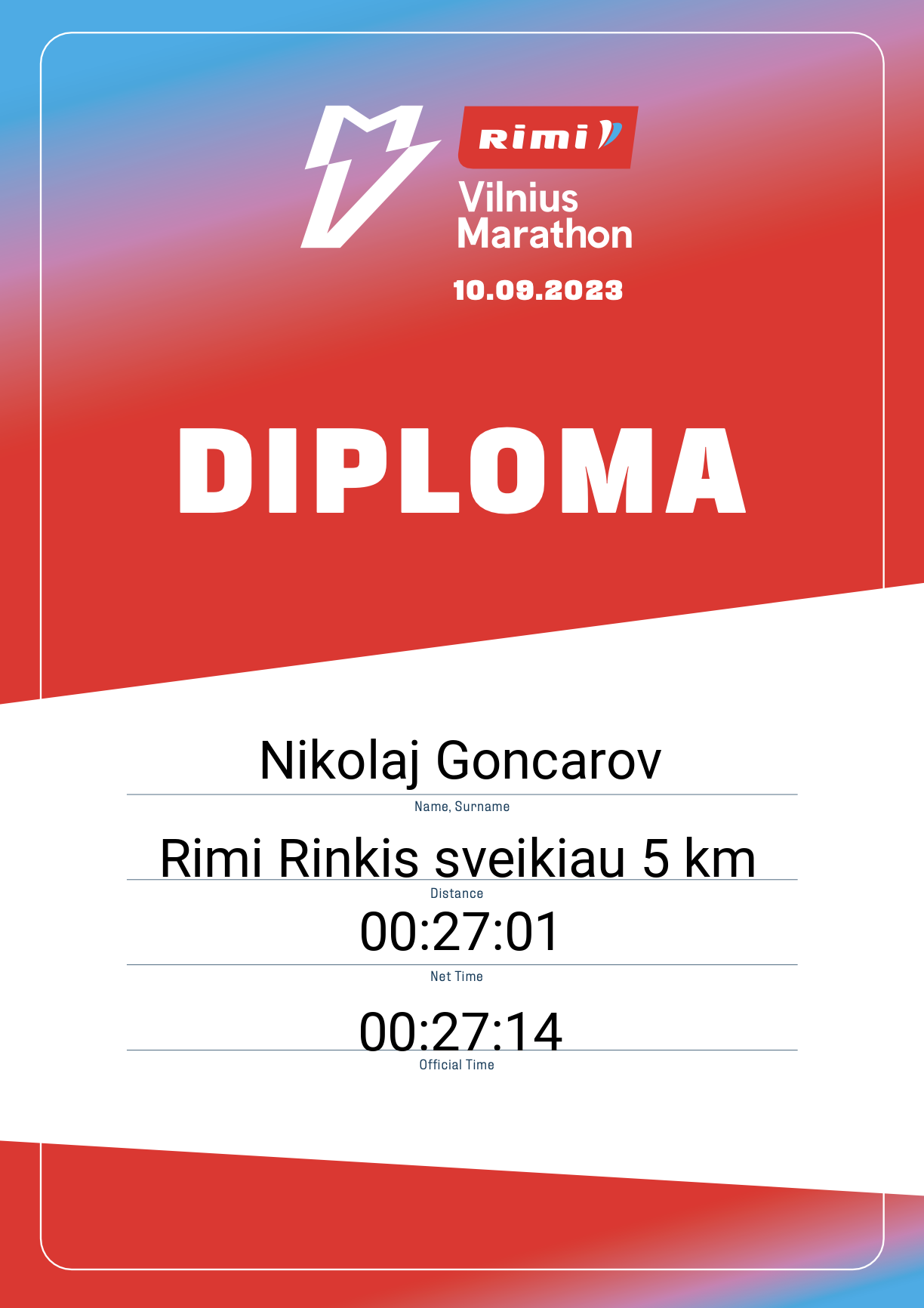 | 421 | Nikolaj Goncarov | Moody's | 31400 | Lithuania | Rimi Rinkis sveikiau 5 km | 00:27:14 | Diplomas |
