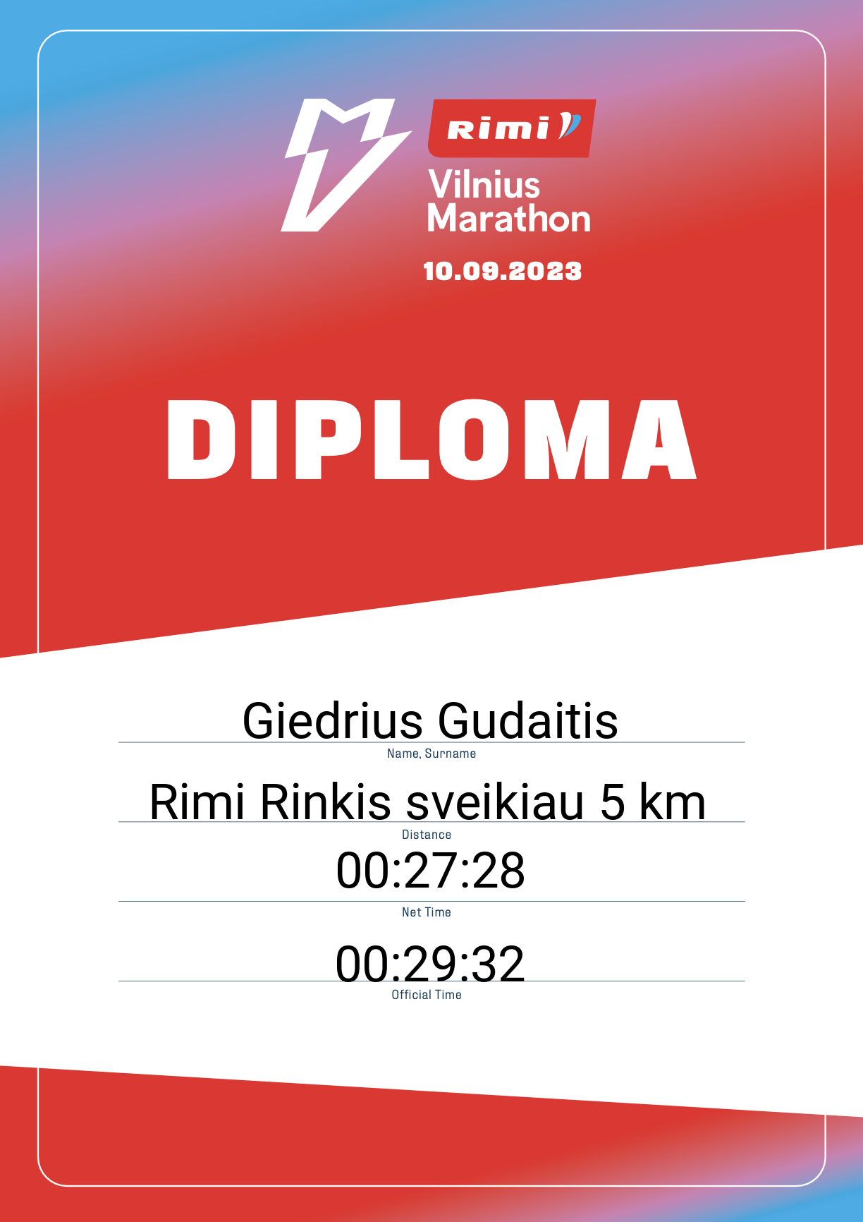 | 672 | Giedrius Gudaitis | KAM | 31123 | Lithuania | Rimi Rinkis sveikiau 5 km | 00:29:32 | Diplomas |