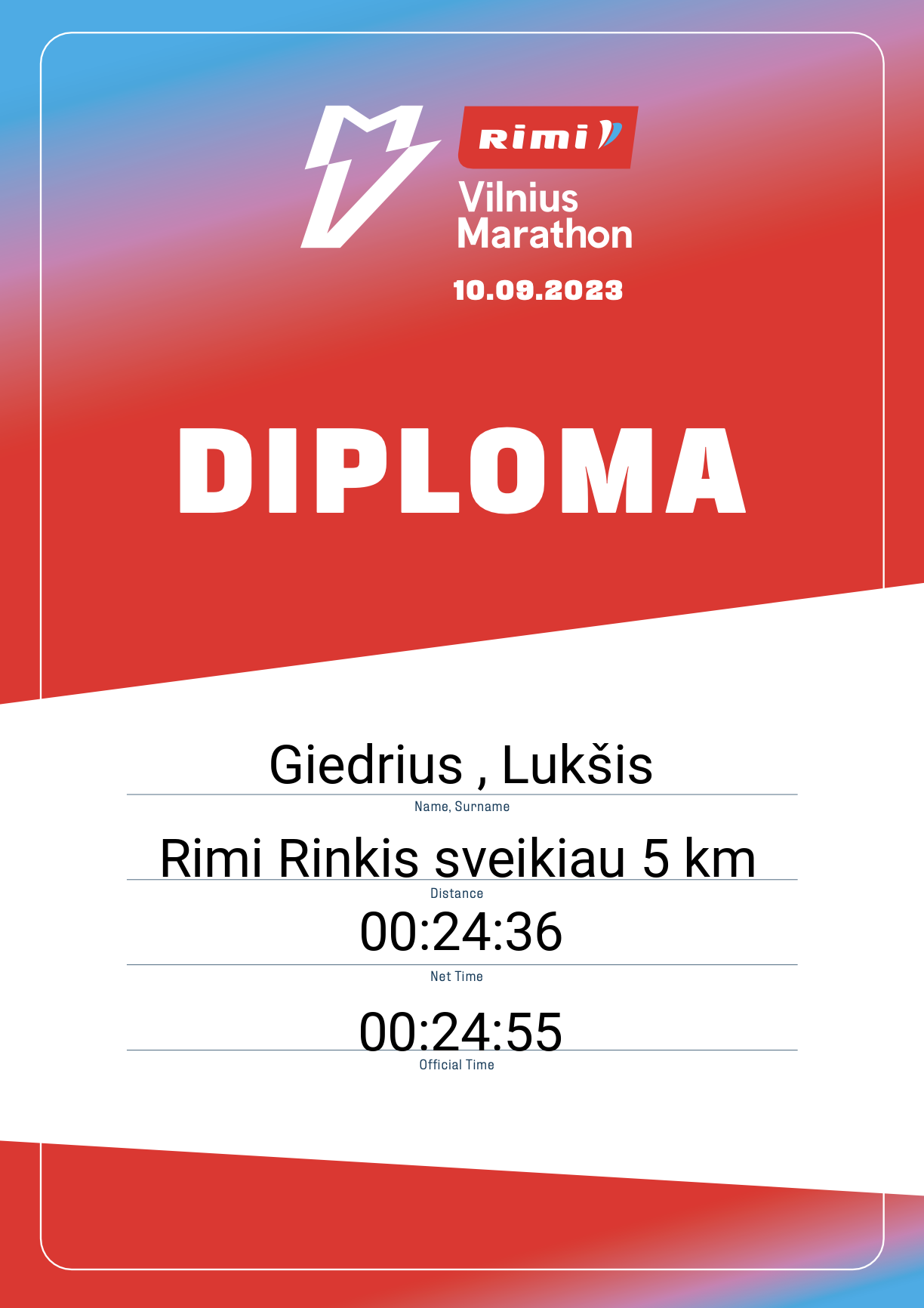 | 252 | Giedrius , Lukšis | TOP EXCHANGE | 31249 | Lithuania | Rimi Rinkis sveikiau 5 km | 00:24:55 | Diplomas |