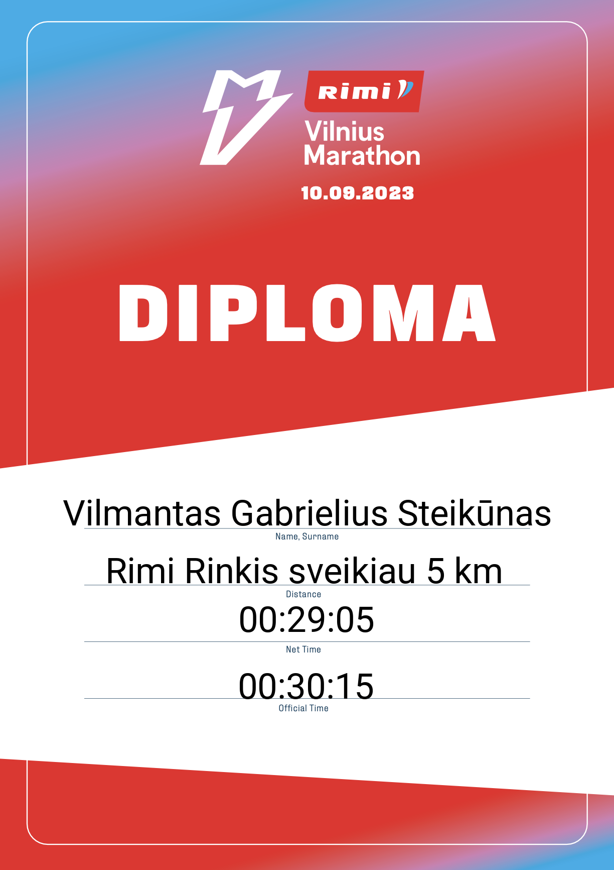 | 774 | Vilmantas Gabrielius Steikūnas | Litgrid | 32038 | Lithuania | Rimi Rinkis sveikiau 5 km | 00:30:15 | Diplomas |