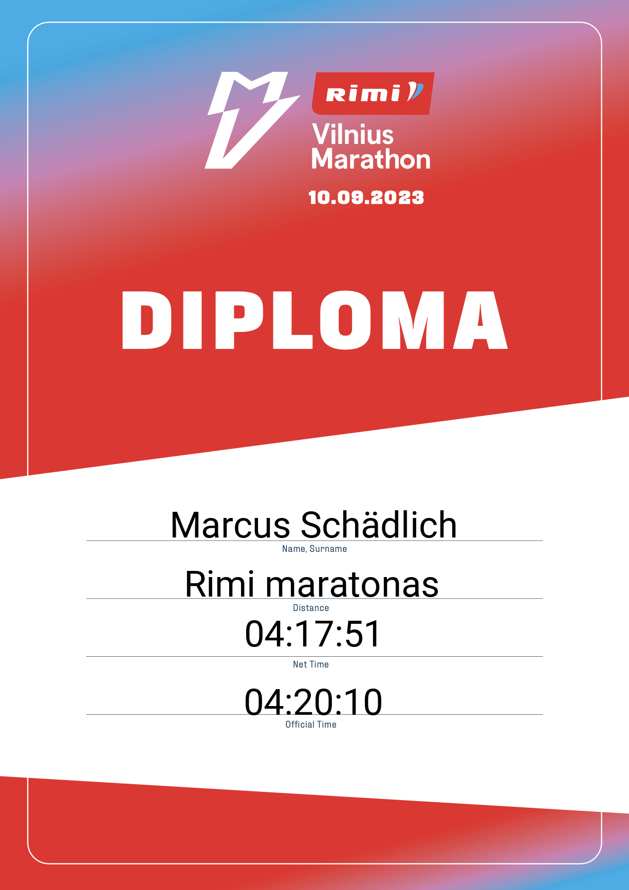 | 751 | Kevin Klinkhammer | 770 | Germany | Rimi maratonas | 04:42:05 | Diplomas | |