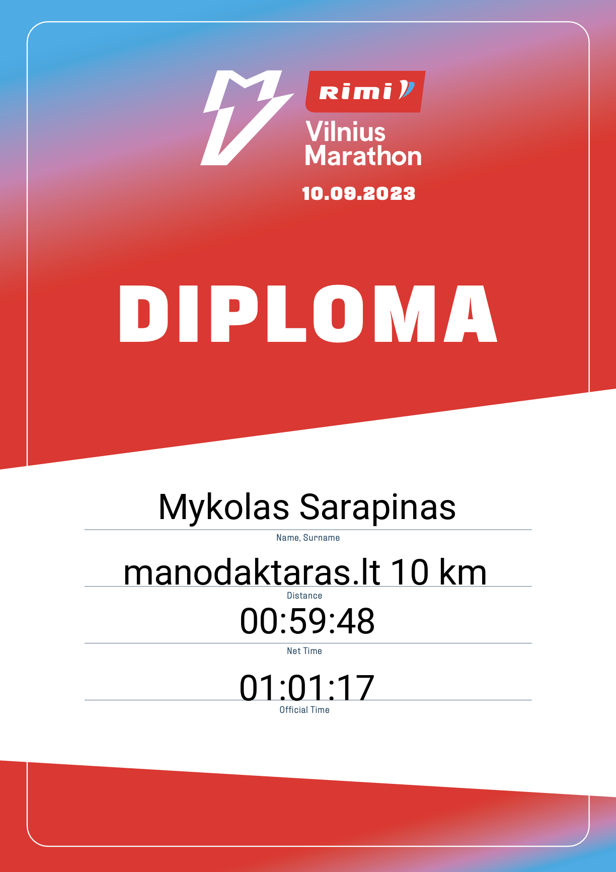 | 1755 | Andrius Plutusevičius | PokerNews | 21225 | Lithuania | manodaktaras.lt 10 km | 01:11:20 | Diplomas |