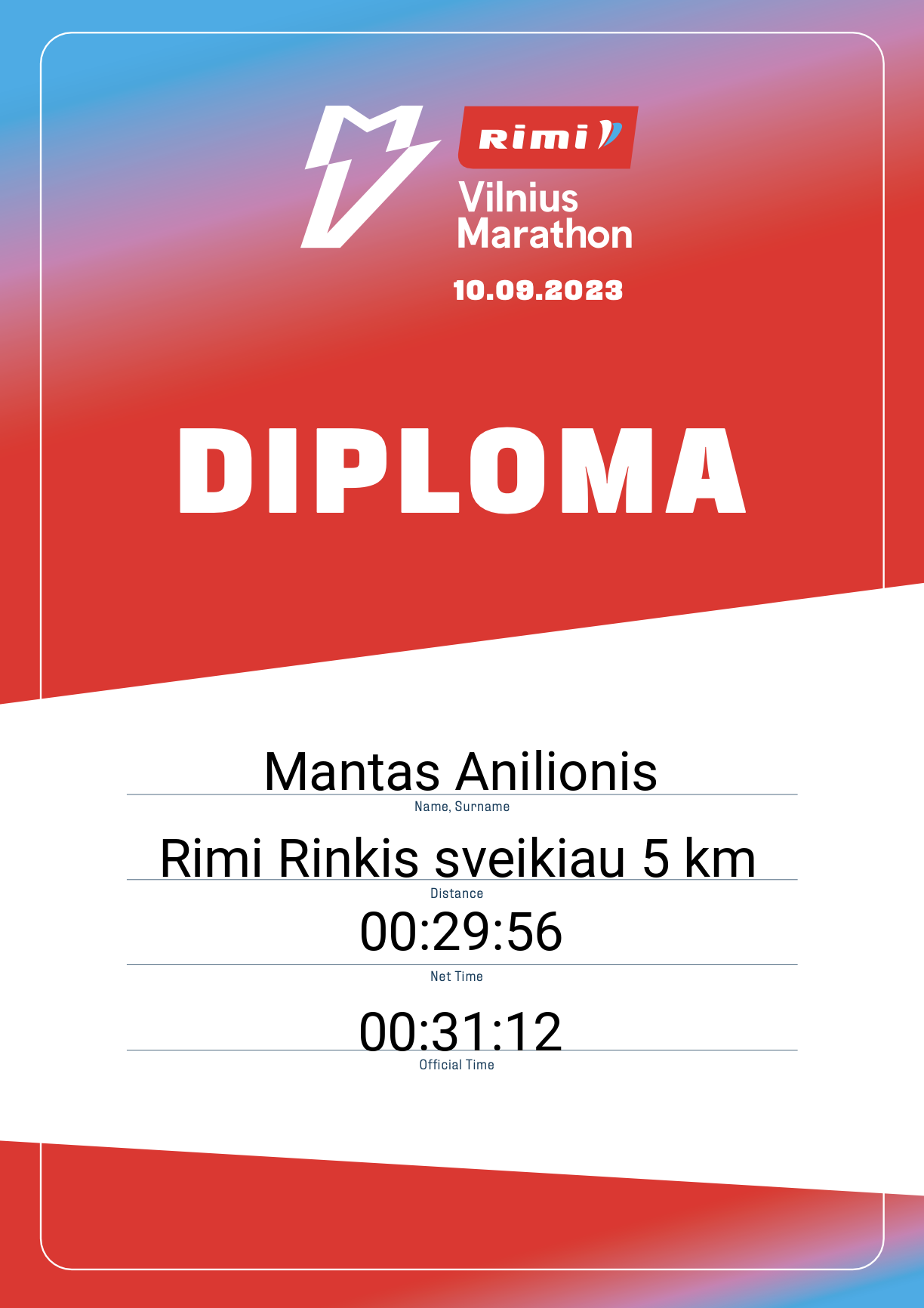 | 899 | Mantas Anilionis | 33019 | Afghanistan | Rimi Rinkis sveikiau 5 km | 00:31:12 | Diplomas | |