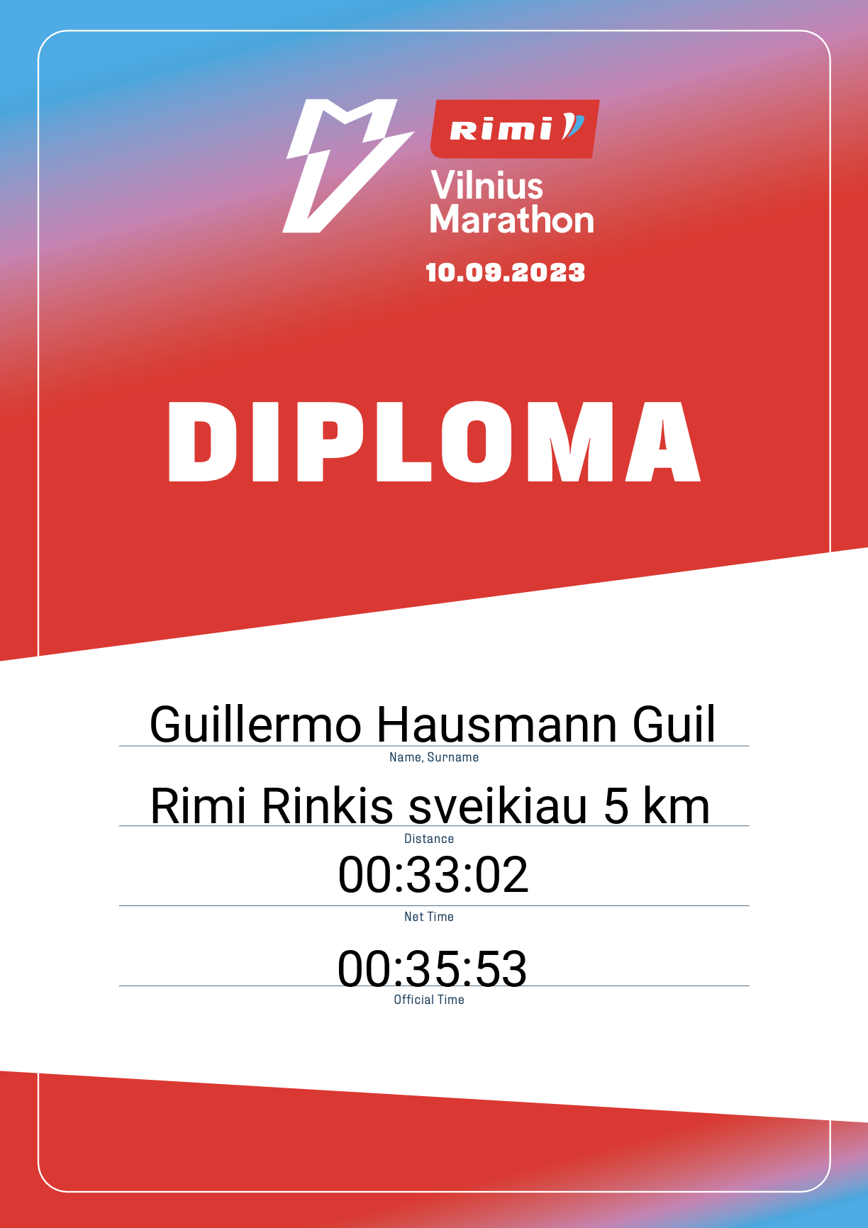 | 1567 | Guillermo Hausmann Guil | 33430 | Spain | Rimi Rinkis sveikiau 5 km | 00:35:53 | Diplomas | |