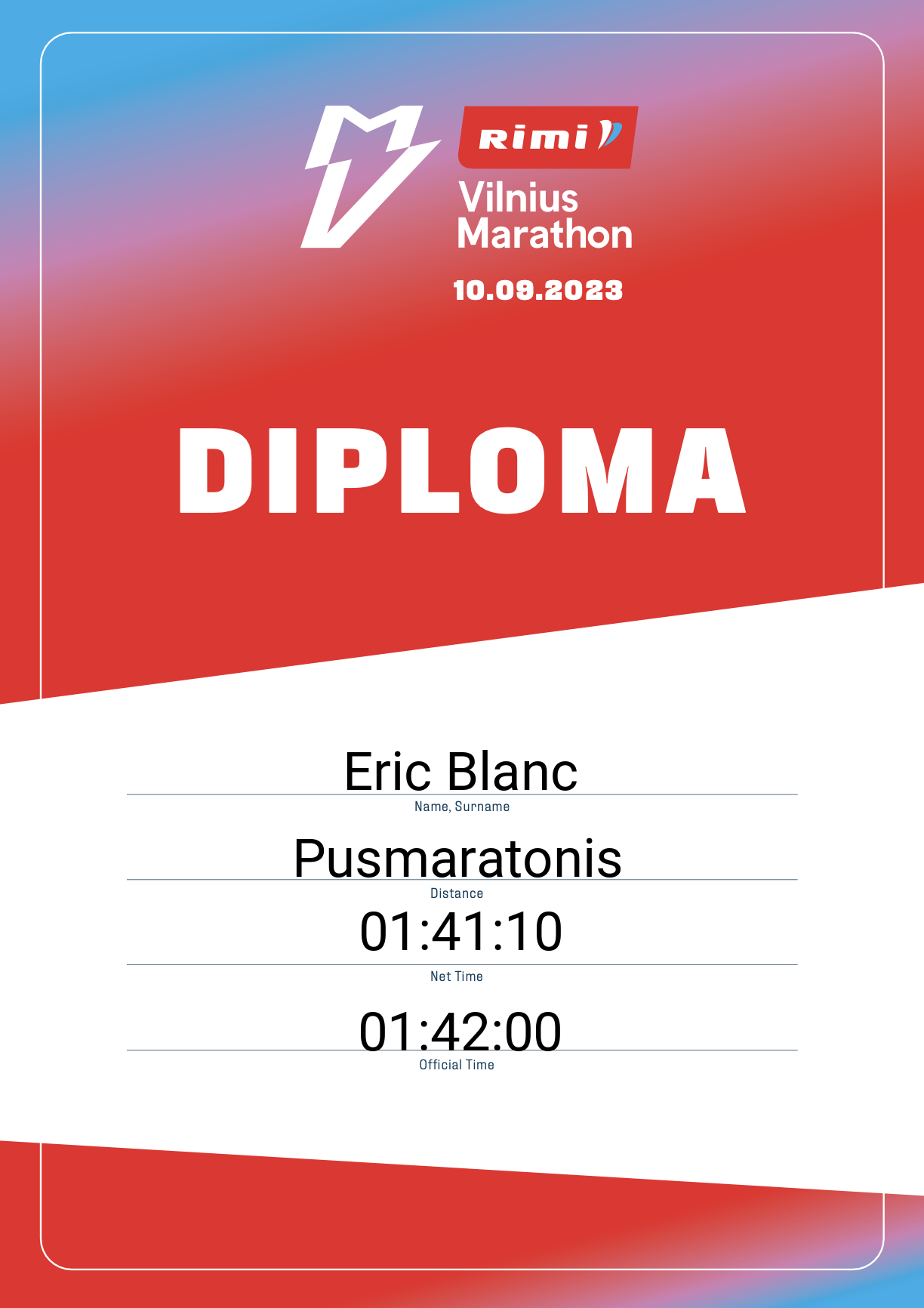 | 292 | Eric Blanc | Voyage Marathon | 12375 | France | Pusmaratonis | 01:42:00 | Diplomas |