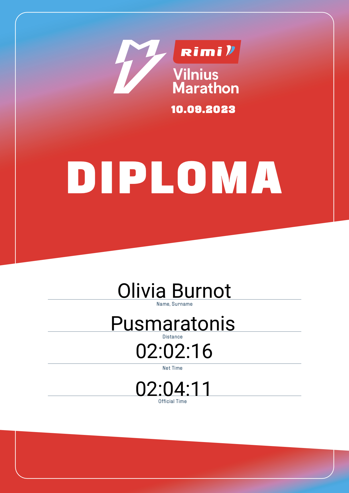| 1085 | Olivia Burnot | 12661 | France | Pusmaratonis | 02:04:11 | Diplomas | |