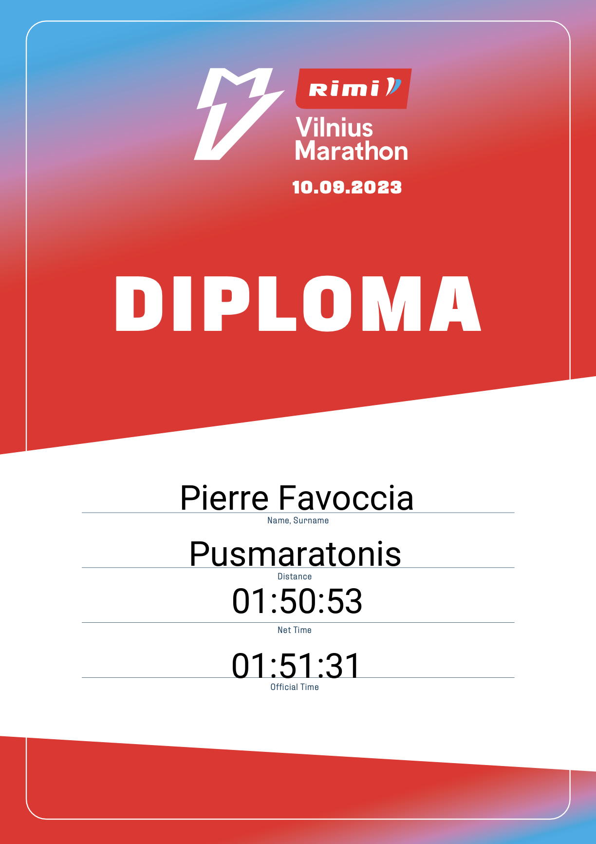 | 588 | Pierre Favoccia | 12916 | France | Pusmaratonis | 01:51:31 | Diplomas | |