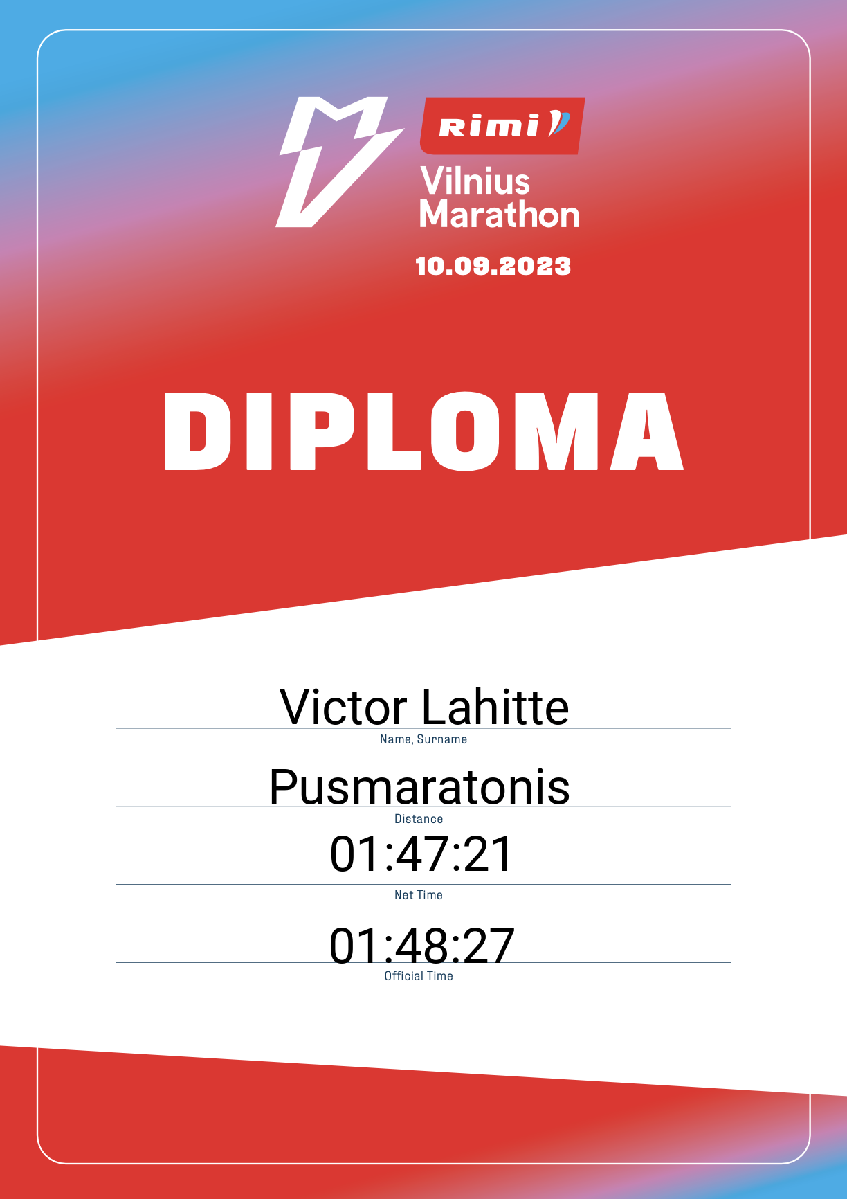 | 491 | Victor Lahitte | 13897 | France | Pusmaratonis | 01:48:27 | Diplomas | |