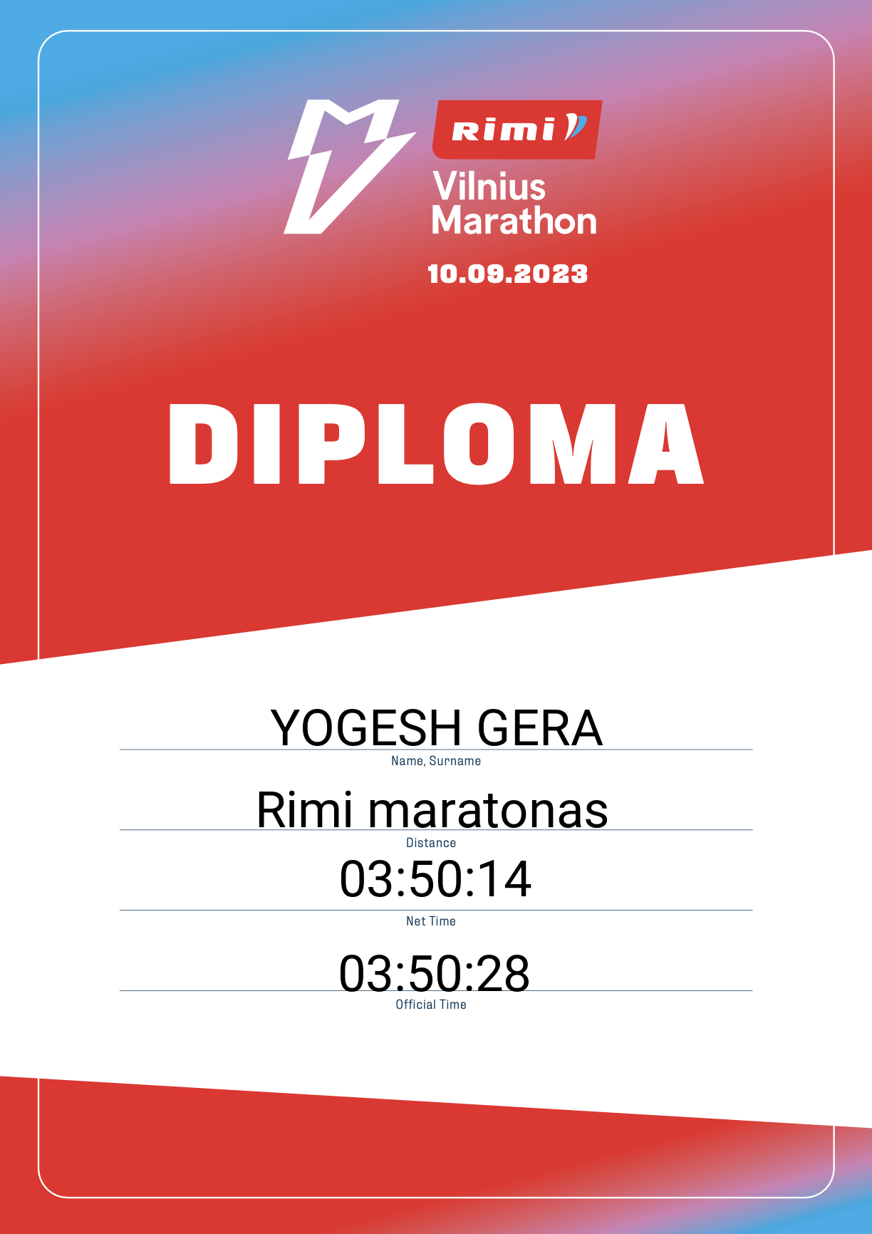| 315 | YOGESH GERA | India | 987 | India | Rimi maratonas | 03:50:28 | Diplomas |