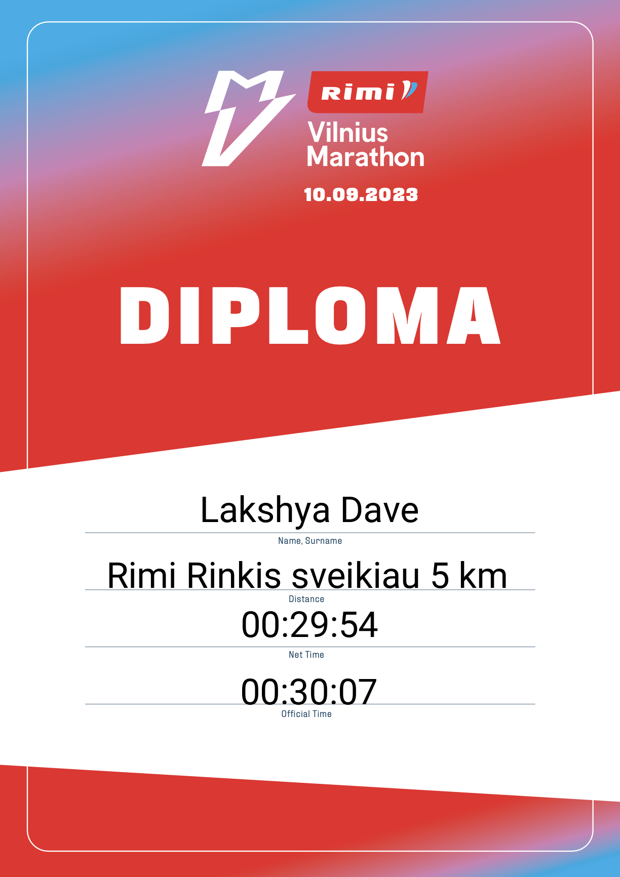 | 758 | Lakshya Dave | 32250 | India | Rimi Rinkis sveikiau 5 km | 00:30:07 | Diplomas | |