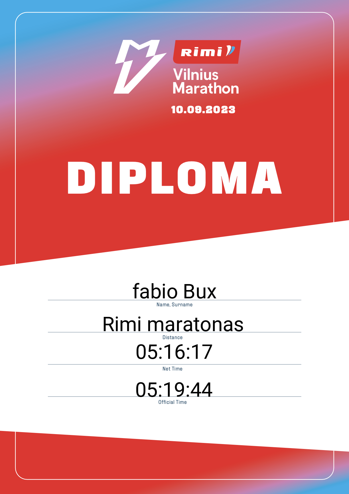 | 885 | fabio Bux | 721 | Belgium | Rimi maratonas | 05:19:44 | Diplomas | |