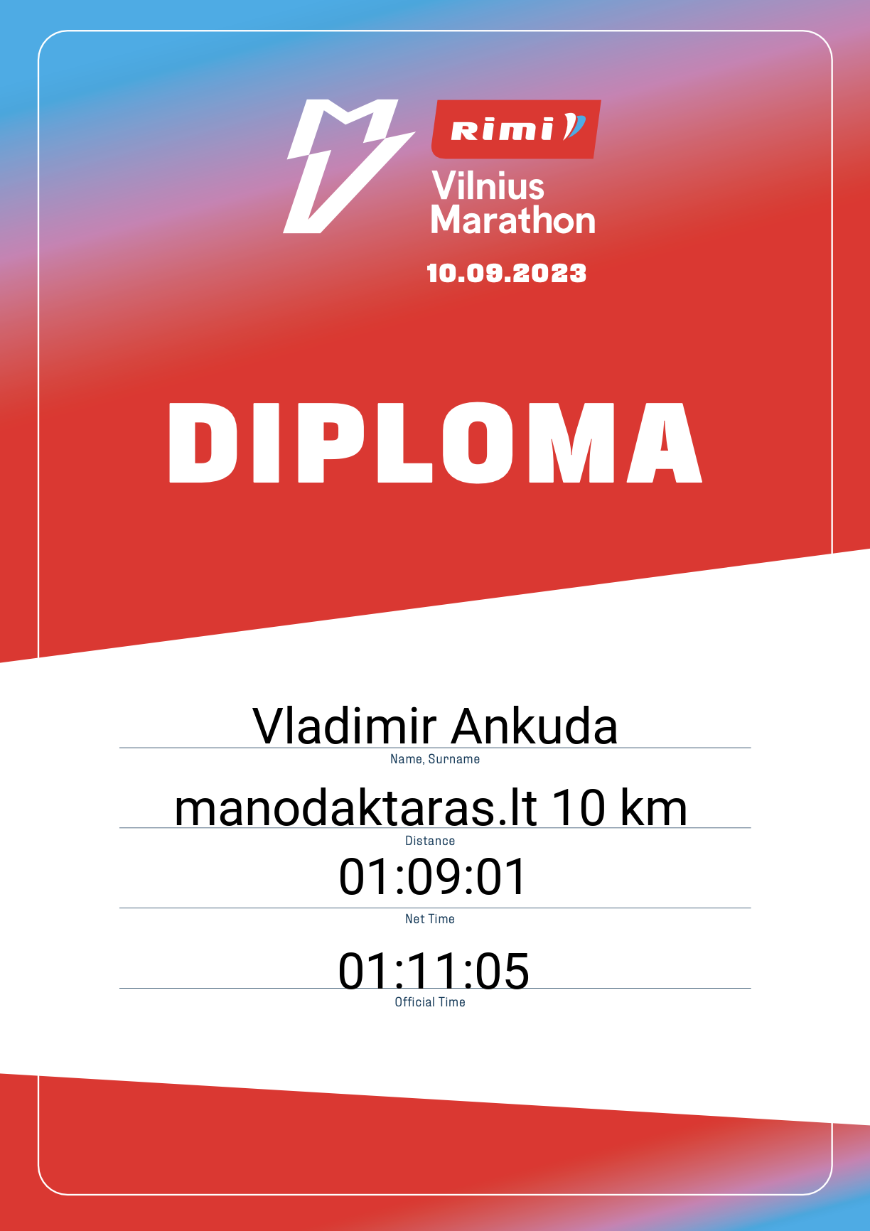 | 1741 | Vladimir Ankuda | Thermo Fisher | 22471 | Lithuania | manodaktaras.lt 10 km | 01:11:05 | Diplomas |