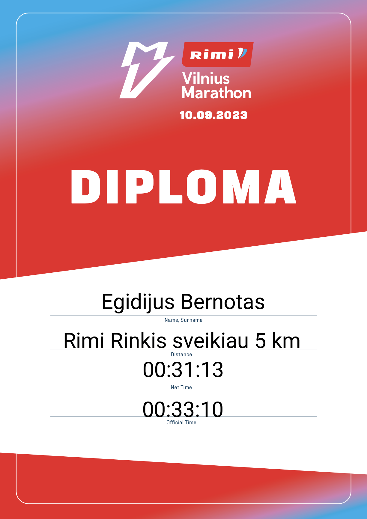 | 1136 | Egidijus Bernotas | Glimstedt | 33259 | Lithuania | Rimi Rinkis sveikiau 5 km | 00:33:10 | Diplomas |