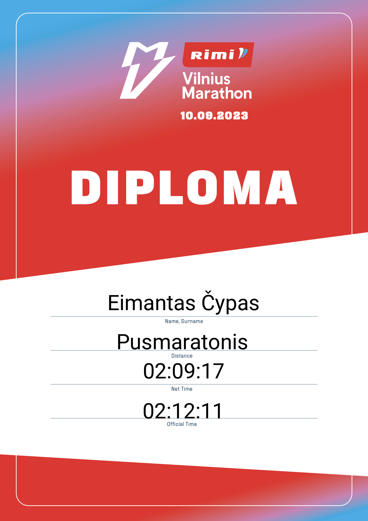 | 695 | Eimantas Radzevičius | RSI Europe | 13080 | Lithuania | Pusmaratonis | 01:54:25 | Diplomas |