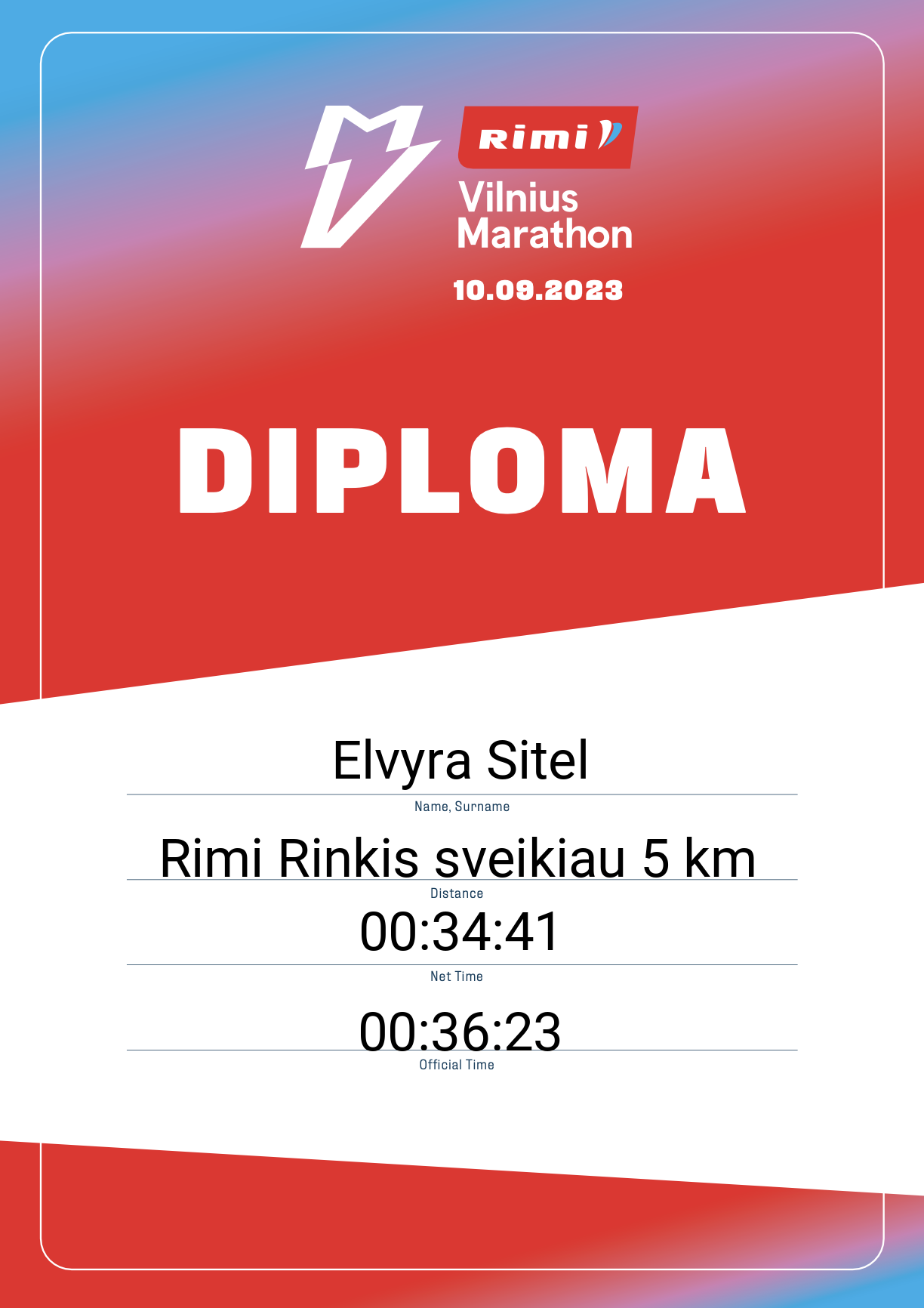 | 1638 | Elvyra Sitel | APLENKIME VĖŽĮ | 33148 | Lithuania | Rimi Rinkis sveikiau 5 km | 00:36:23 | Diplomas |