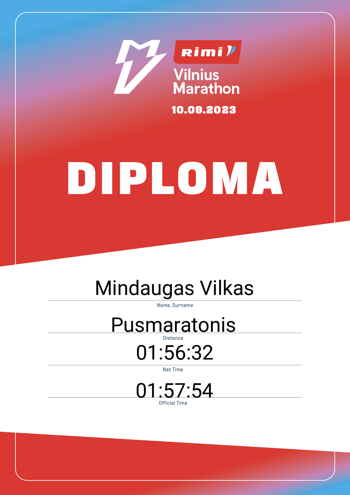 | 824 | Mindaugas Vilkas | DPD Lietuva | 13805 | Lithuania | Pusmaratonis | 01:57:54 | Diplomas |