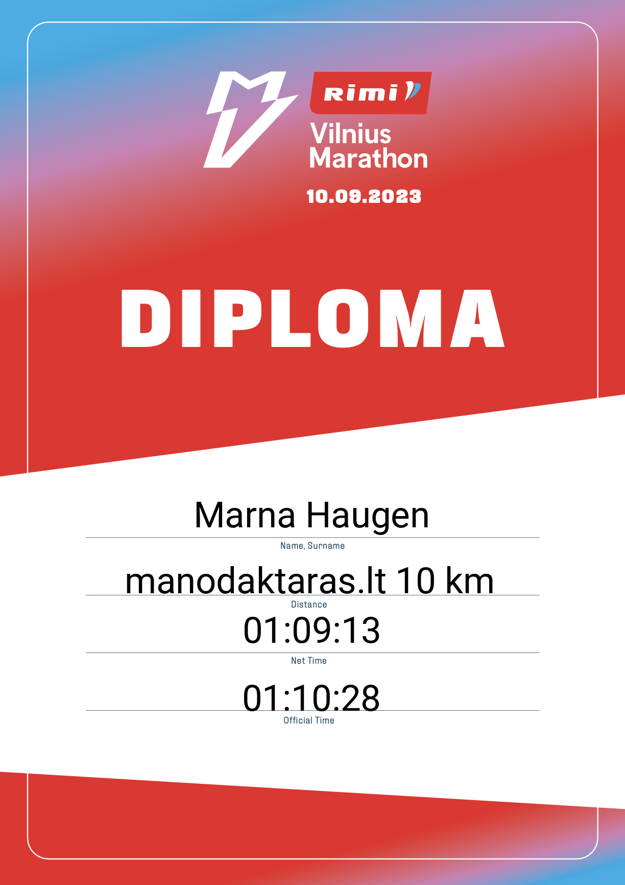| 1704 | Marna Haugen | Norian | 20576 | Norway | manodaktaras.lt 10 km | 01:10:28 | Diplomas |