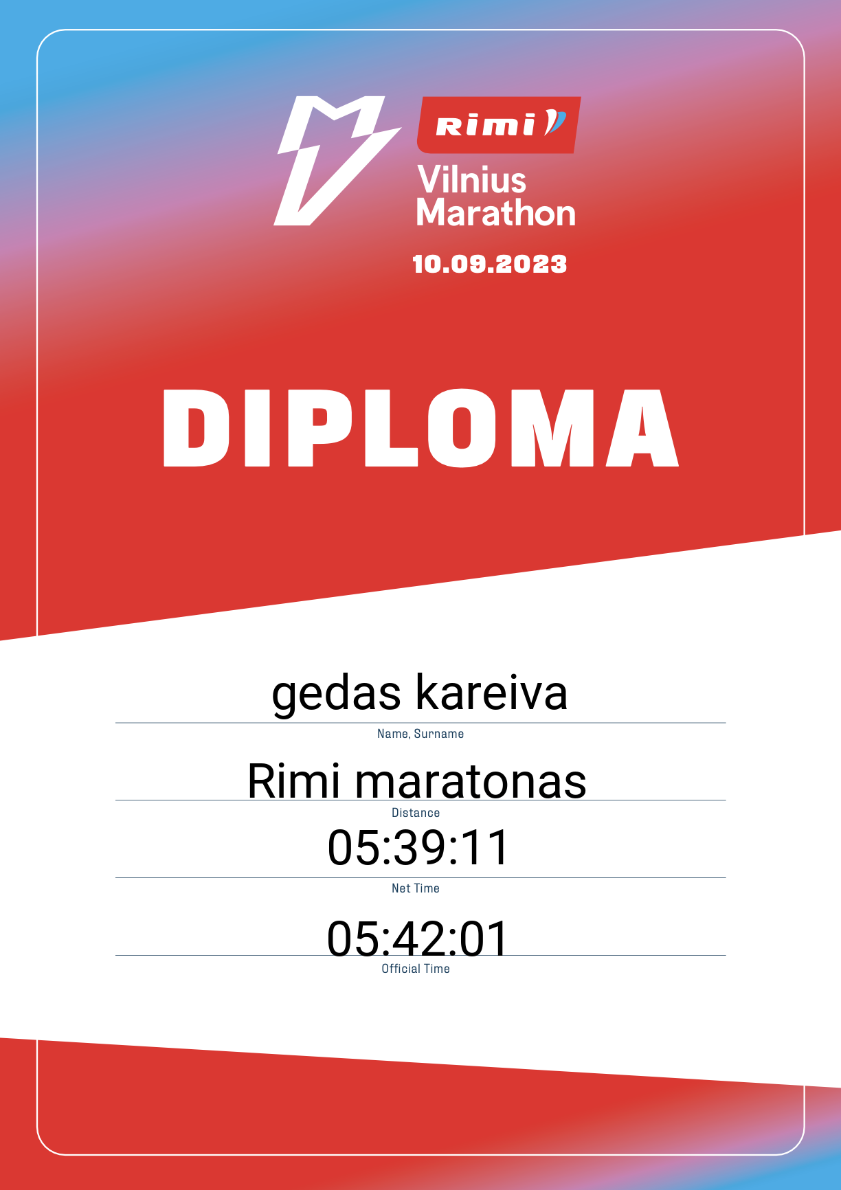 | 912 | gedas kareiva | pera.lt | 563 | Lithuania | Rimi maratonas | 05:42:01 | Diplomas |