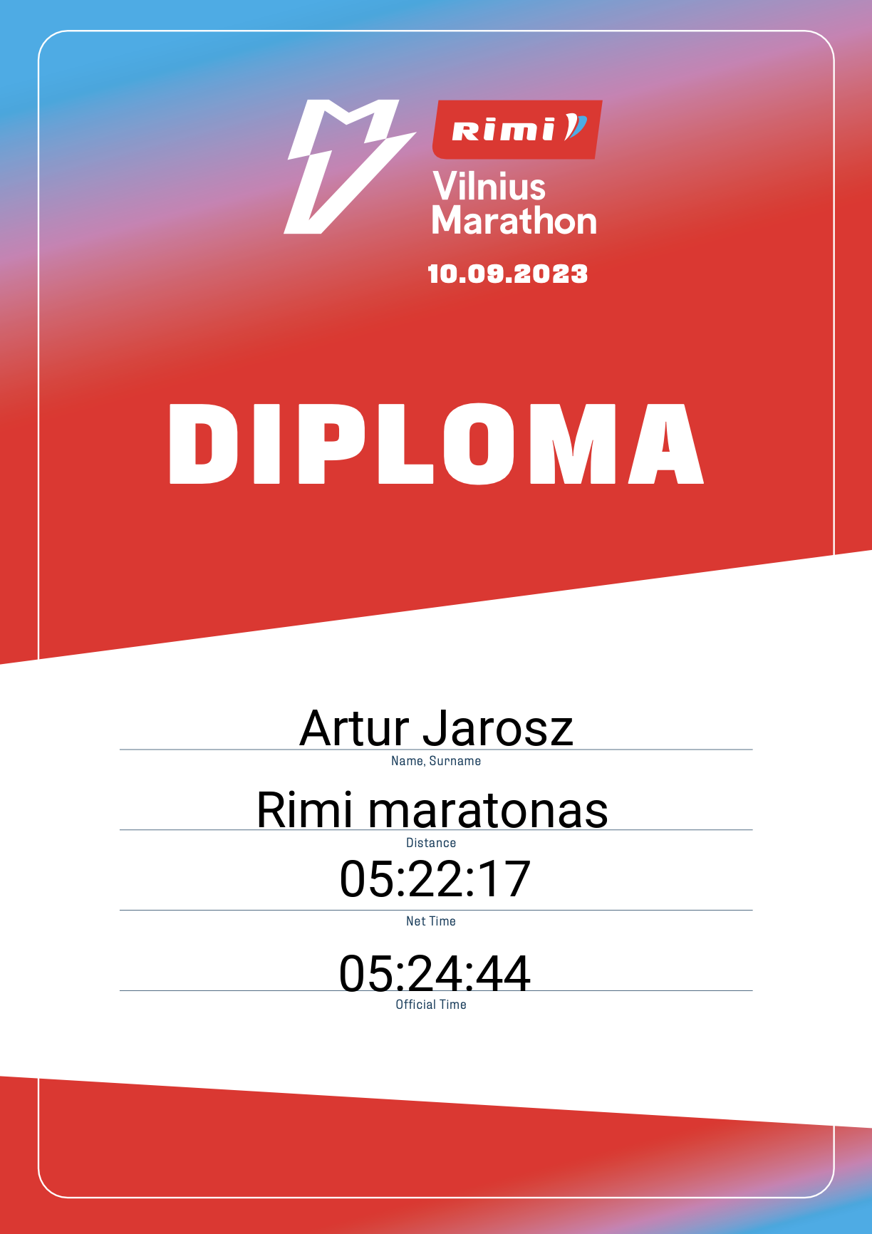 | 898 | Artur Jarosz | 609 | Poland | Rimi maratonas | 05:24:44 | Diplomas |