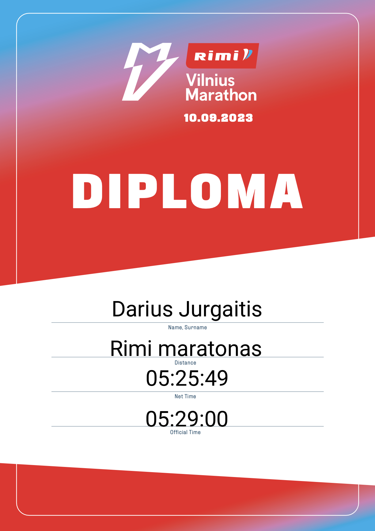| 335 | Paulius Seliukas | JustRun | 897 | Lithuania | Rimi maratonas | 03:52:09 | Diplomas |