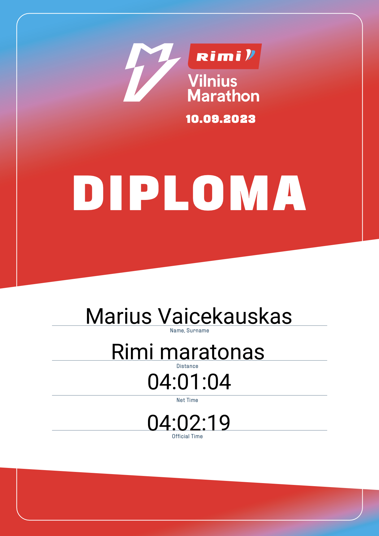 | 462 | Marius Vaicekauskas | s’nail it | 1299 | Lithuania | Rimi maratonas | 04:02:19 | Diplomas |