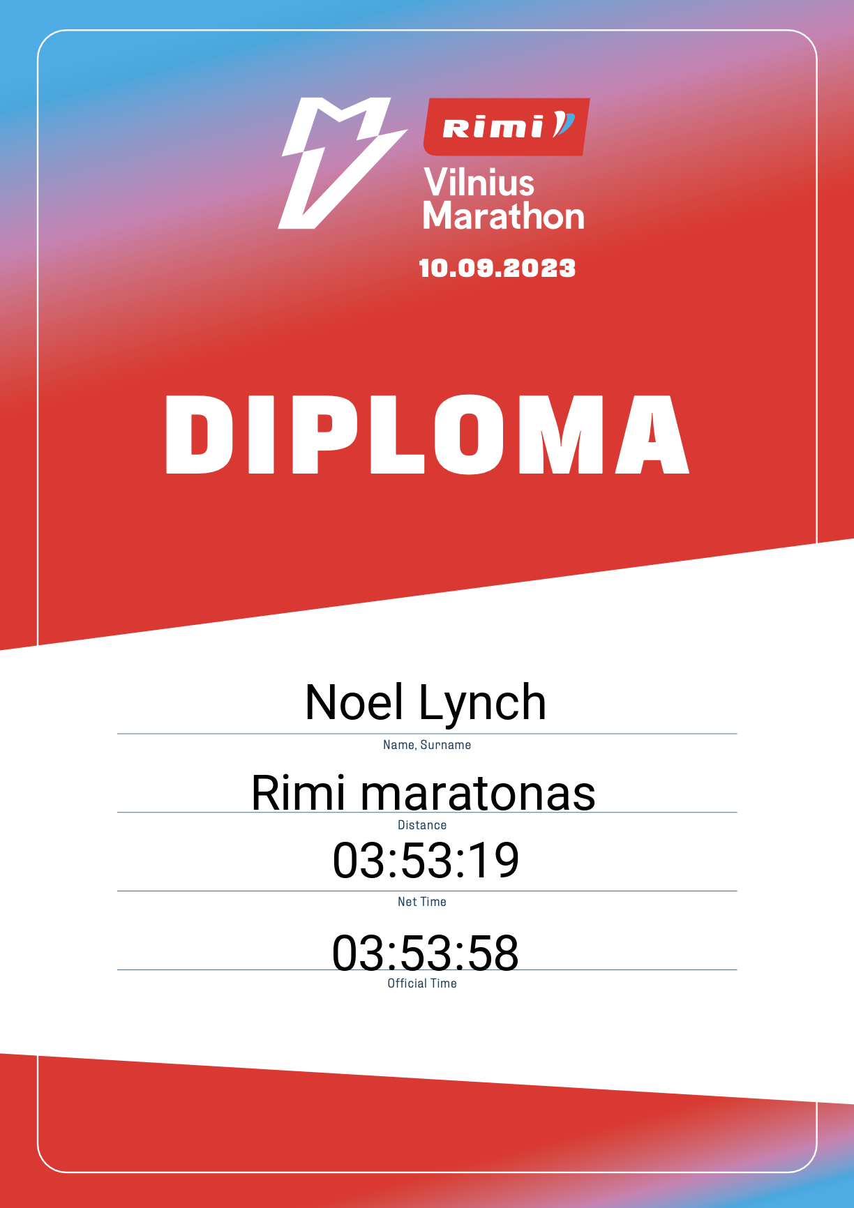 | 250 | Egidijus Vincel | Ranelagh Harriers | 299 | United Kingdom | Rimi maratonas | 03:43:13 | Diplomas |