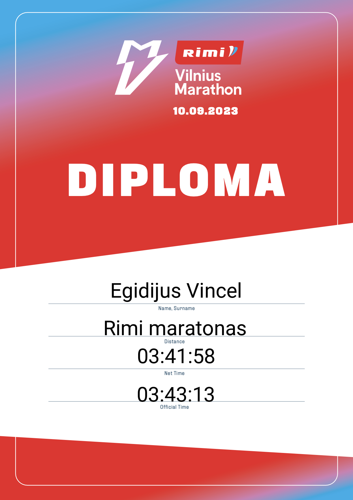 | 236 | Adas Gudonis | Ukmergės bėgimo klubas | 291 | Lithuania | Rimi maratonas | 03:41:09 | Diplomas |