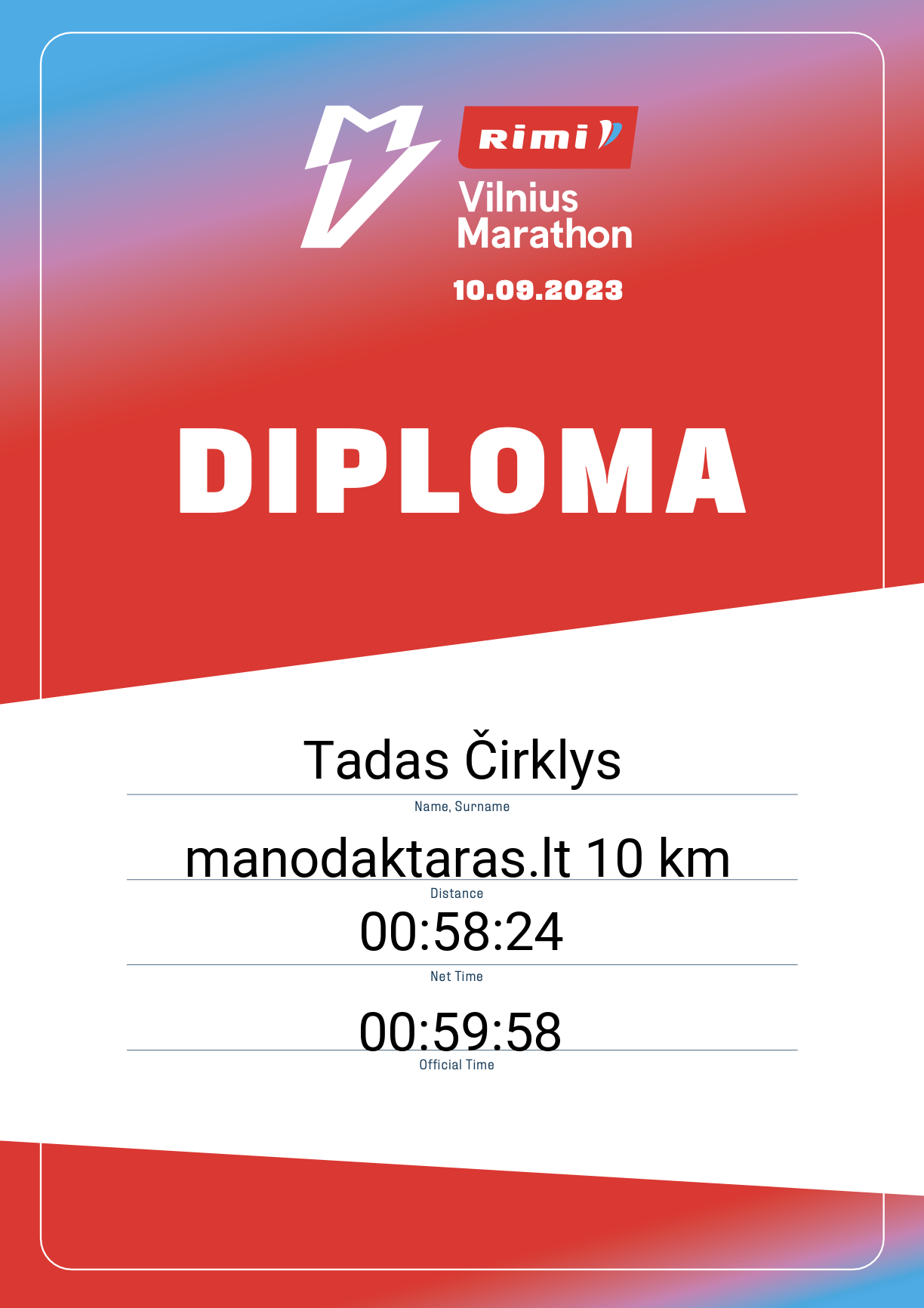 | 1007 | Tadas Čirklys | Western Union | 21892 | Lithuania | manodaktaras.lt 10 km | 00:59:58 | Diplomas |